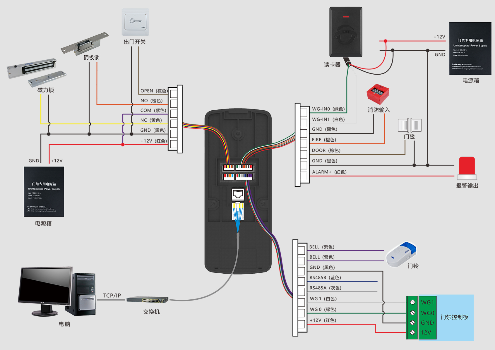Wiegand输出×1、门锁控制×1