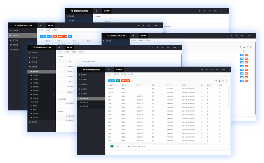 支持:人员、部门、设备参数、记录管理等操作设置