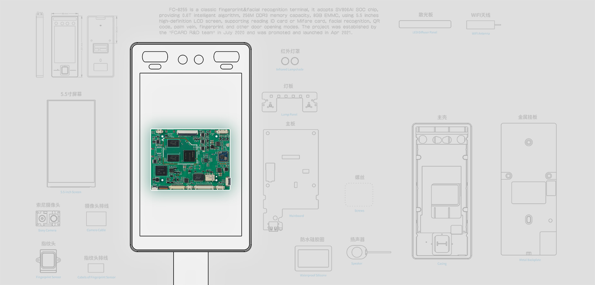 超大容量人脸识别、二维码识别、考勤应用专用AI处理器