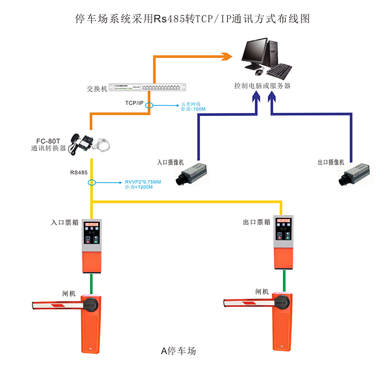 您好,停车场系统采用Rs485转TCP/IP通讯方式具体如何连接,请贵公司帮忙解答一下,告知我具体的连接方式,谢谢