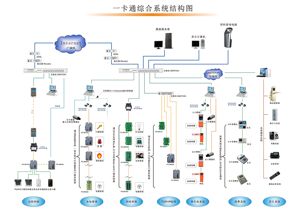 您好,感谢您对贵公司的关注,下面给您附上我公司一卡通综合系统结构图,您可以做个参考,如有需要,欢迎拨打我公司免费咨询电话:400-688-6663。