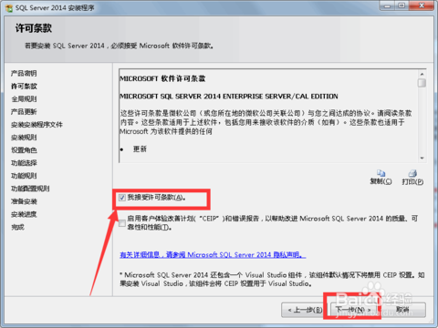 4.鼠标选中我接受许可条款。然后单击下一步: