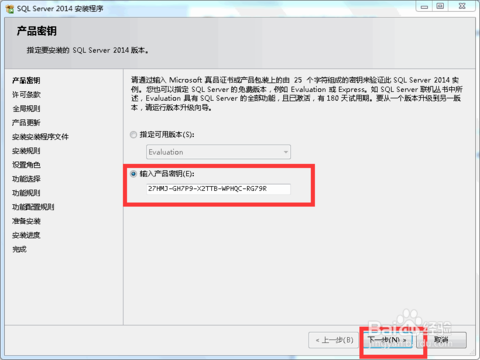 3.在弹出的界面输入安装密钥,没有可以网上搜一下,然后单击下一步:
