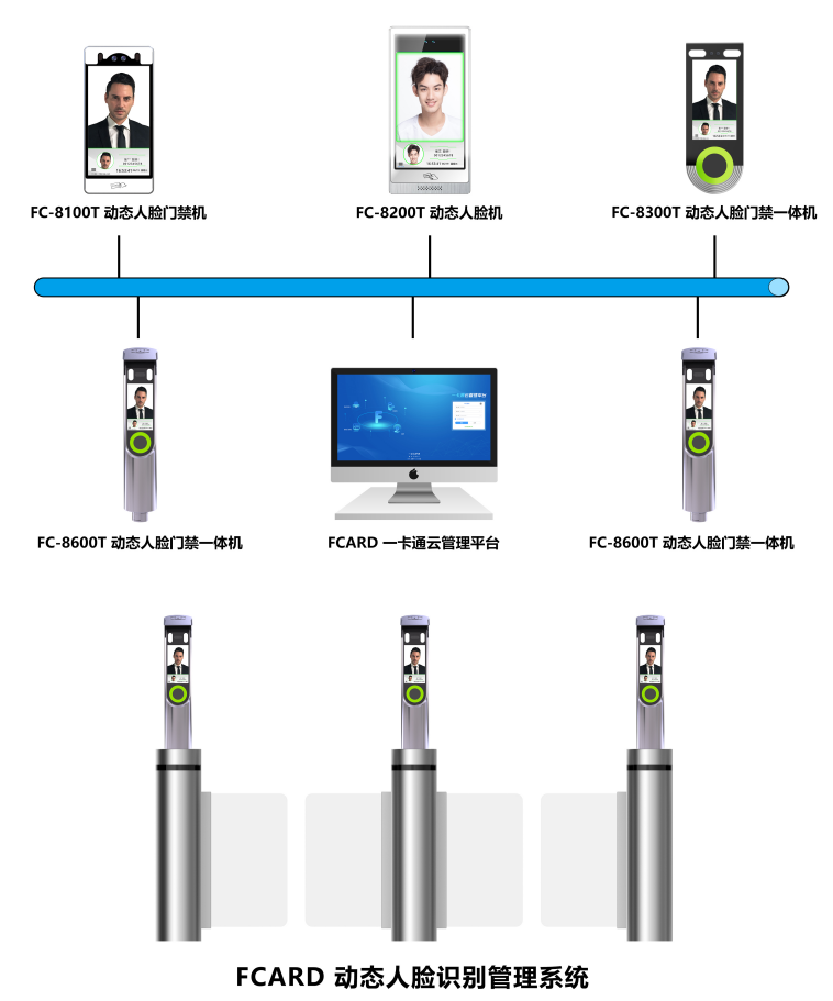 FCARD动态人脸门禁考勤系统组成: