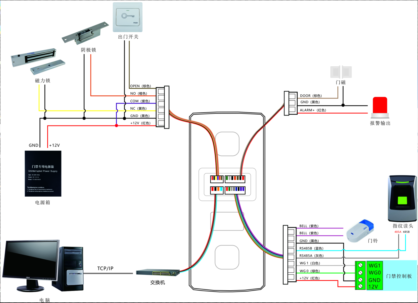 麻烦提供一下FC-A103E指纹门禁考勤一体机的连线图