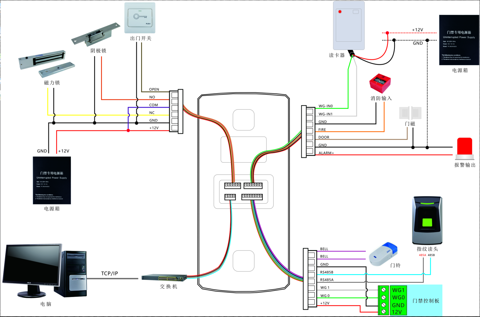 麻烦提供一下FC-D102E金属指纹门禁考勤一体机连线图,谢谢。
