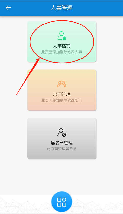 在【添加人事档案】页面,点击【指纹管理】。如下图2-6所示: