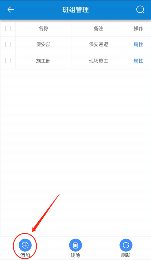 点击【巡更】-【巡更人员】-【班组管理】-点击【添加】-》》设置【班组名称、备注】-点击【确定】。如图33-1所示:
