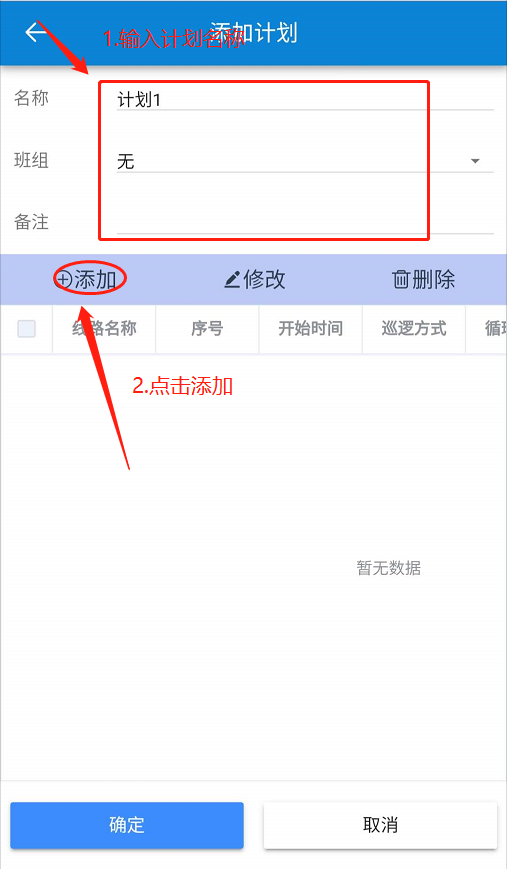 点击【巡更】-》》【巡更计划】-》》【添加】。如下图所示: