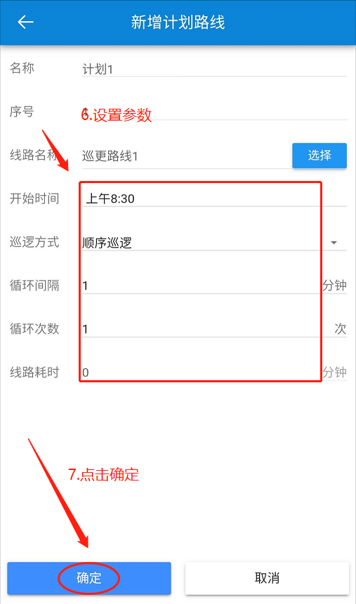 回到【新增计划路线】页面-》设置计划路线参数-点击【确定】。如图38-4所示: