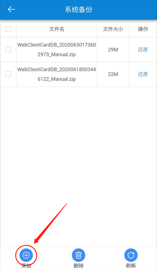 点击【系统管理】-【系统备份】-【添加】。如下图所示: