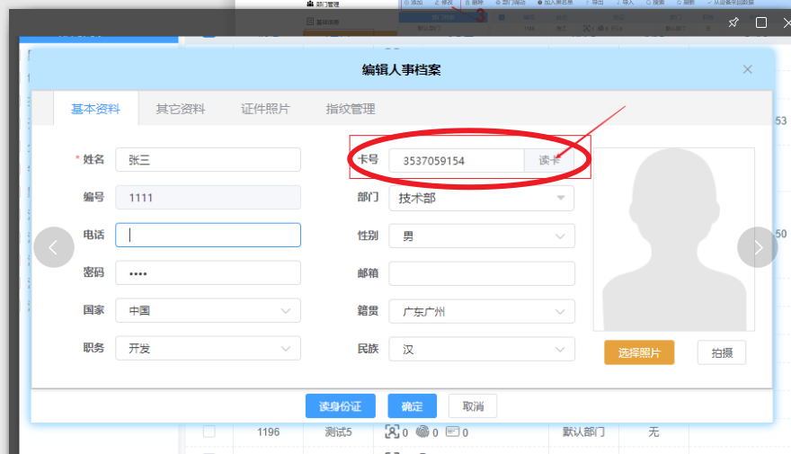 1.先准备好发卡器,把发卡器连接上电脑,打开人事档案页面 ,打开编辑人员或者新增人员
