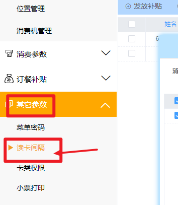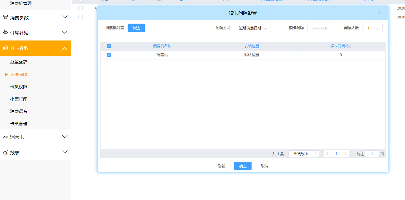 弹出读卡间隔,勾选对应的消费机,并设置对应信息,保存确定即可