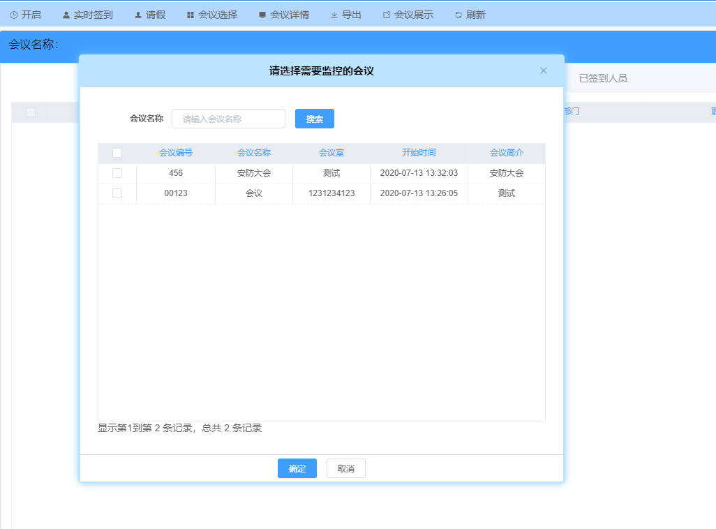 弹出选择会议窗体,选择一个进行监控即可