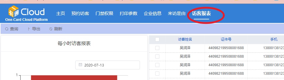 登录云系统手机版  点击访客 =》访客登记信息 即可查询
