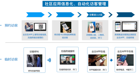 访客人员人脸识别、二维码识别、临时开门密码、临时二维码识别、可视对讲开门等通行方式。