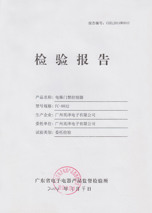 Congratulations that Guangzhou Fcard Electronics Co.,Ltd has achieved "FC-8832 Elevator Access Control Board Inspection Report" which issued by Guangzhou Product Quality Supervision Testing Institute.