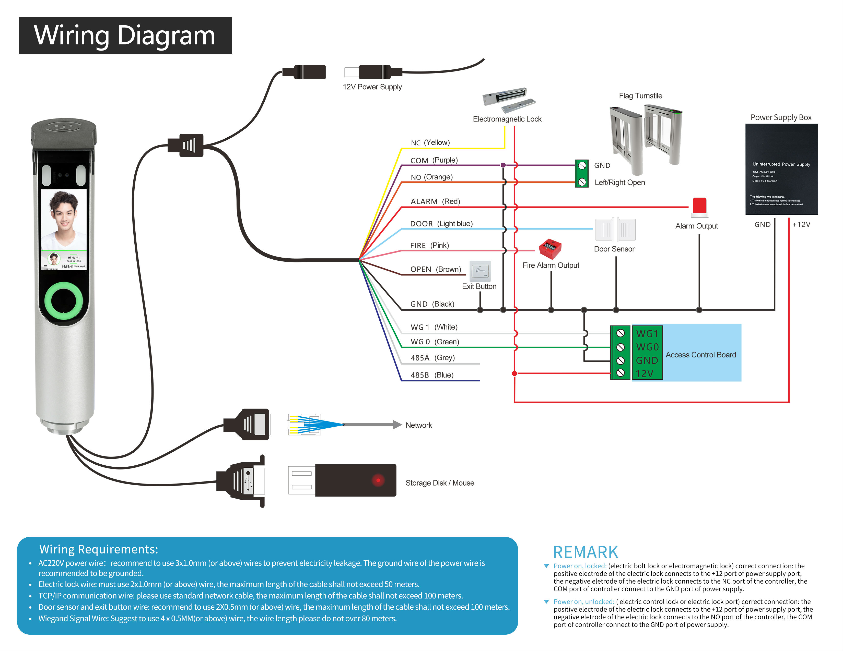 Hello, welcome to use our products, thank you for your support. The following is the wiring diagram of the FC-8600T face recognition access controller: