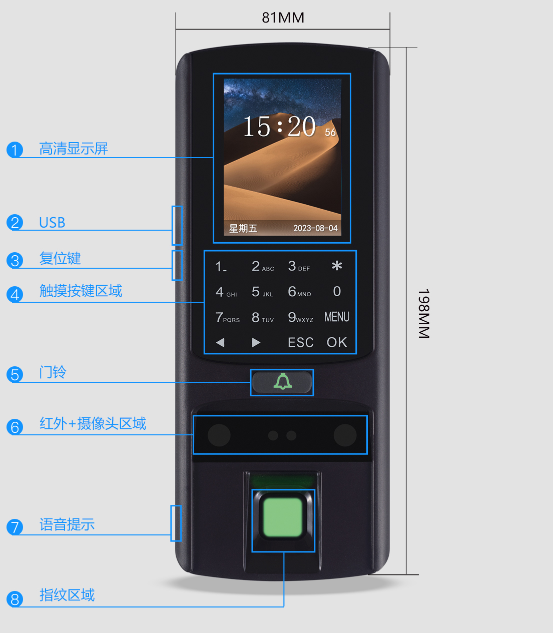 • 1000用户(1000指纹、1000卡、1000密码)