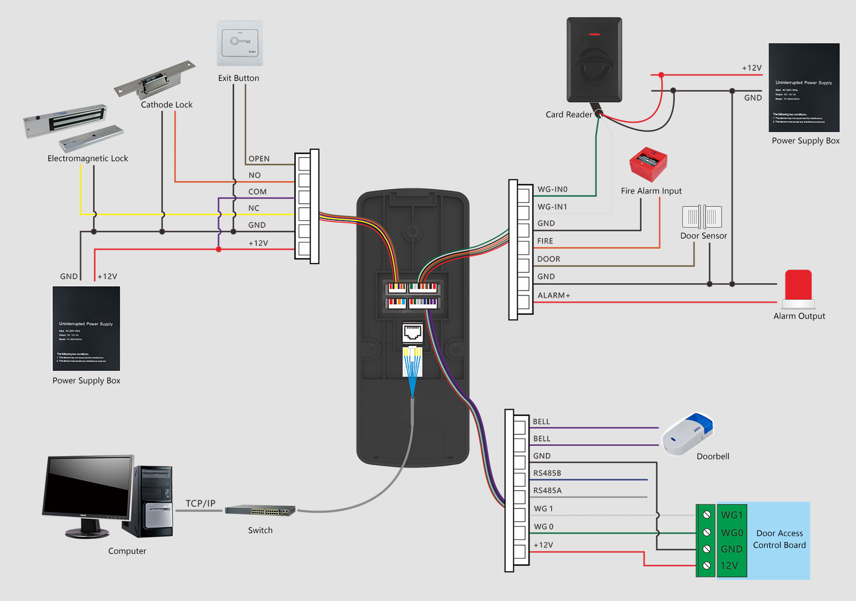 Exit Button x1, Door Sensor x1, Alarm Output x1, Wiegand Output x1, Magnetic Lock Control x1