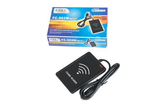 FC-502电梯发卡器采用USB接口与电脑连接,无需安装驱动程序,支持EM卡或Mifare卡,采用USB自动取电无需外加电源。通过FCARD3500软件发卡写卡,(消费系统可用它作为消费充值与发卡)系统软件把脱机设备的开门权限写到卡片里面。