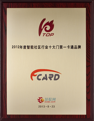 2012.8.18祝贺FCARD广州市英泽电子有限公司荣获“十大门禁一卡通品牌”