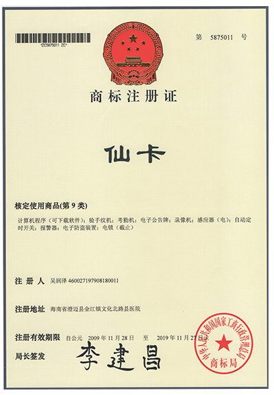2009.11.28祝贺FCARD广州市英泽电子有限公司荣获“仙卡”商标注册证