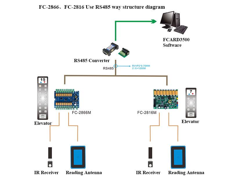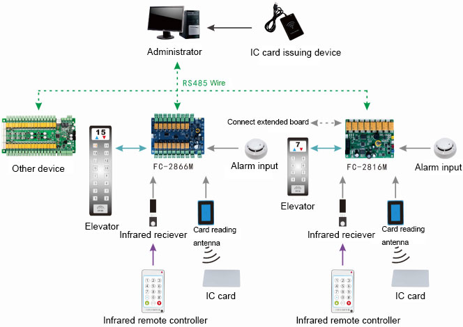FC-2866 Offline Lift Access Board for an elevator hierarchical control, personnel access control down the elevator to meet various people building the business management company within the building and out of the elevator, more efficient and safer management. Identity for different people, with different floor privileges, you can specify that certain people only go to certain floors, some people can not go to certain floors. The FC-2866M Offline Lift Access Board enables network management, standalone elevator control, remote control etc. Built-in large memory support 130,000 records and 60,000 black and white list, the machine card issuers write off mode, the number of registered personnel unrestricted.