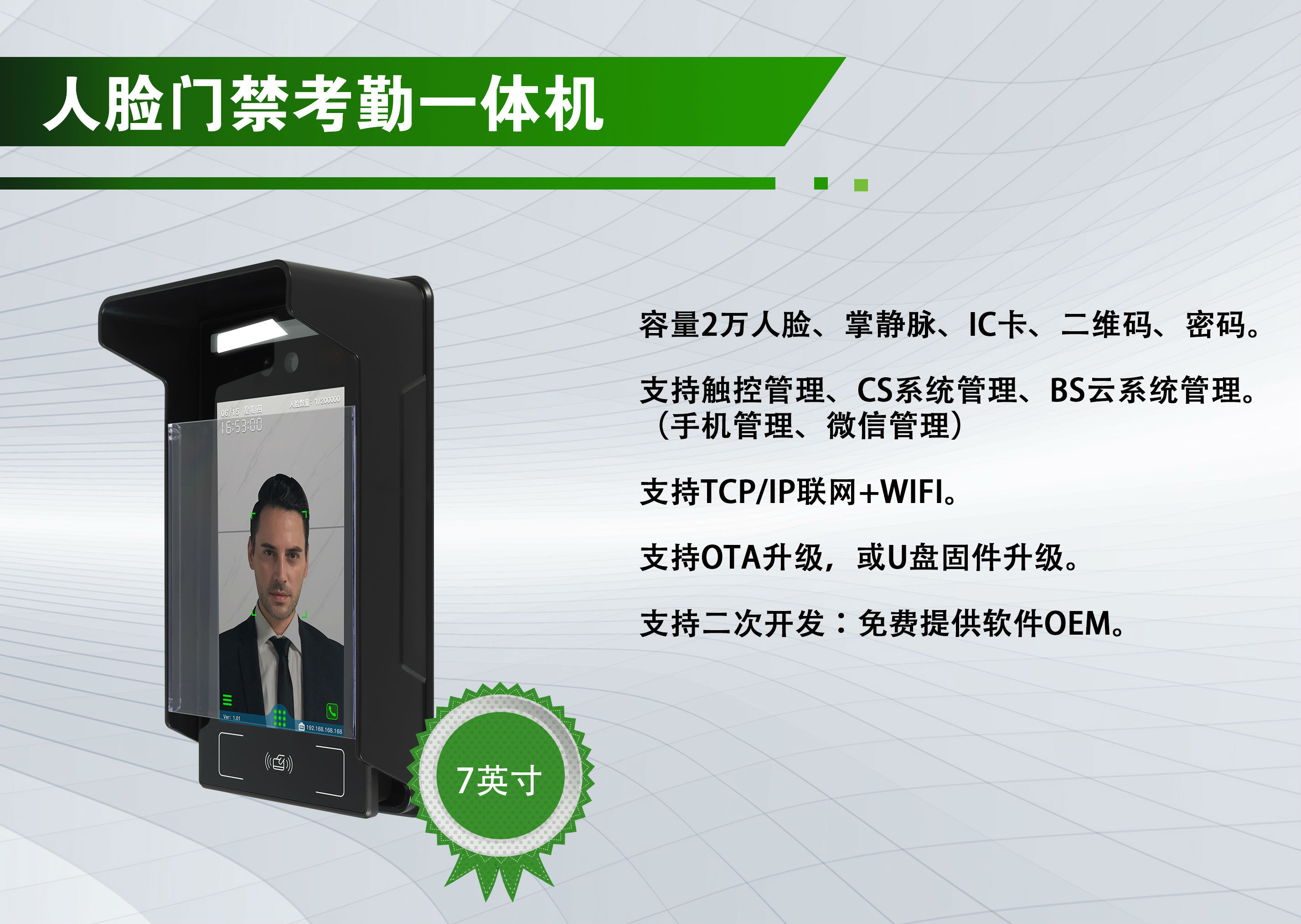 人脸考勤门禁一体机的人脸识别功能,凭借“非接触式、高精度、高防伪”的特性,成为身份核验与考勤管理的核心技术支撑,其功能实现依托“图像采集-特征提取-比对验证”的全流程智能处理。